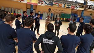 Durante la visita en el Polideportivo Municipal David Santamaría de la capital, el máximo responsable de la Diputación les ha deseado mucha suerte y ánimo ante la próxima e importante cita en presencia del presidente del Club Alejandro Ortiz, el vicepresidente Alberto Quemada y el entrenador César Montes. También estuvo presente el guardameta José Javier Hombrados a quien Latre felicitó por su reciente renovación para un año más, y el diputado delegado de Deportes, Lucas Castillo.