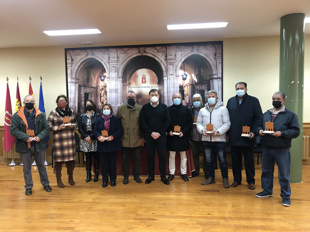 El alcalde de Cuenca, Darío Dolz, y la concejala de Personal, Saray Portillo, han despedido este lunes a los 14 funcionarios municipales que se han jubilado en este año 2021.