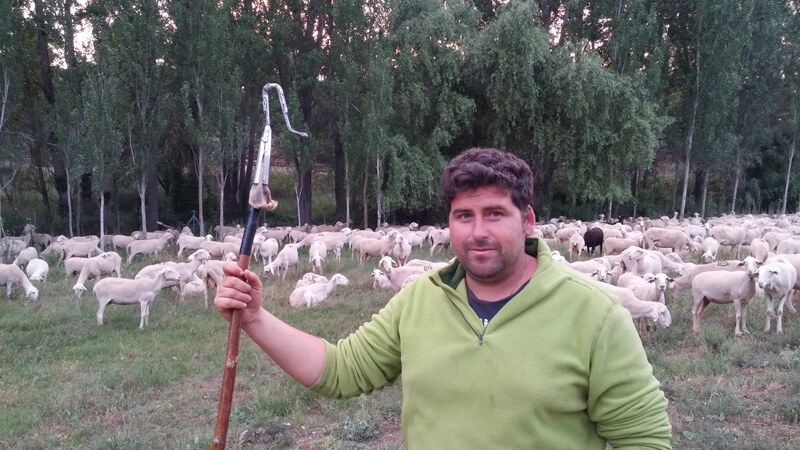 De las mil seiscientas ovejas que son llevadas por cuatro pastores, seiscientas son de Raúl Villar, el hijo de Manolo que, cuando le entrevisto en el Chantre, no se separa del gancho sin el cual, es impensable coger a una oveja. Nosotros hacemos seiscientos kilómetros y pico. Somos los pastores que hacemos la trashumancia más larga de España.