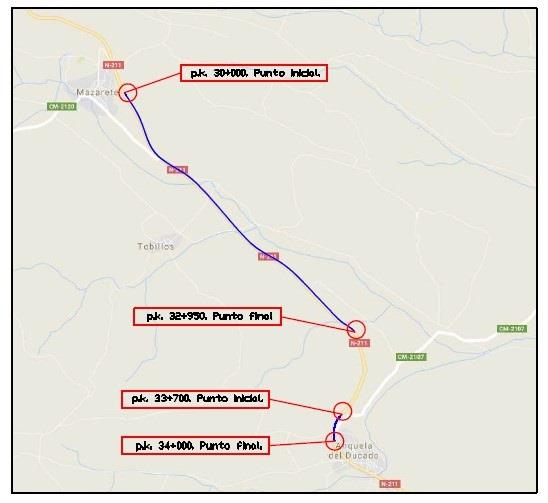 El Ministerio de Transportes, Movilidad y Agenda Urbana (Mitma) ha licitado un contrato de obras de “Rehabilitación del firme mediante extensión de capa de refuerzo en la carretera N-211 entre el km 30,000 y 32,950 y los km 33,700 y 34,000. Tramo: Mazarete-Anquela del Ducado”, en la provincia de Guadalajara. El presupuesto de licitación asciende a 415.499 euros.