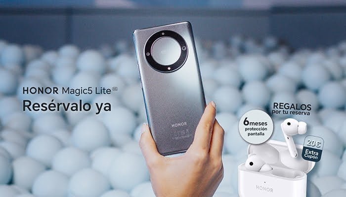 A partir de hoy (21 de febrero de 2023) HONOR Magic5 Lite está disponible para compra anticipada en tres llamativos y elegantes colores: Emerald Green, Midnight Black y Titanium Silver (solo en HiHonor) a un precio de 369€ en HiHonor. Además, el dispositivo llega con una oferta de lanzamiento que incluye: un cupón de descuento de 20€ para todos los usuarios que se suscriban a HiHonor, 6 meses de protección de pantalla y unos auriculares HONOR Earbuds 2 Lite.