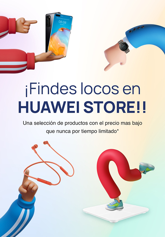 *Promoción válida en la tienda online de Huawei entre el 16 de abril de 2021 y el 18 de Abril de 2021 (ambos incluidos). Consulta los productos promocionados y las ofertas disponibles en la web https://consumer.huawei.com/es/offer/crazyweekend/