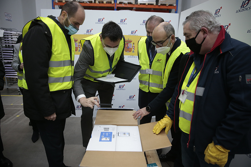 Técnicos de la Agencia Española del Medicamento y Productos Sanitarios (AEMPS) firmarán en los próximos minutos la recepción de esta primera entrega. Se trata de lotes de la vacuna desarrollada por los laboratorios Pfizer y BioNTech, destinados a los países de la Unión Europea, que salieron el miércoles en contenedores térmicos de la planta belga de Puurs y que ya se encuentran en un almacén de Guadalajara.