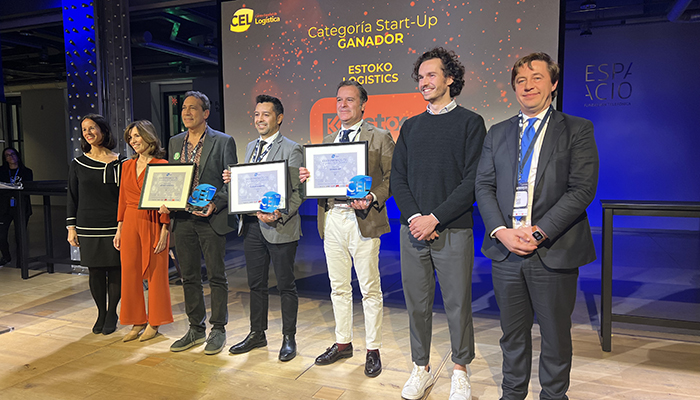 Laura Nistal, directora de Logistics Spain; Ignacio Azorín, director general de Estrategia Digital de Comunidad de Madrid y Ana Isabel González Herrera y Ramón García, presidenta y director general de Centro Español de Logística (CEL), fueron los encargados de entregar el premio a Juan Carlos López Pinacho, co-founder de la empresa ganadora: ESTOKO Logistics.