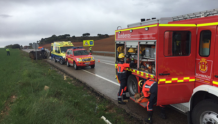 Los bomberos del Ayuntamiento de Cuenca intervienen en un accidente de tráfico en Arcas