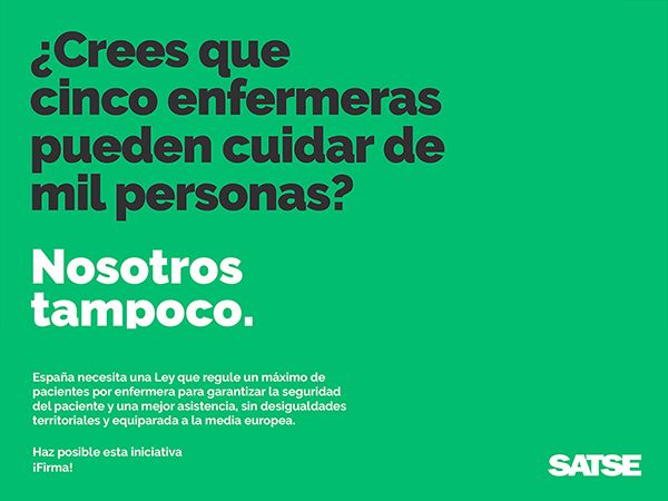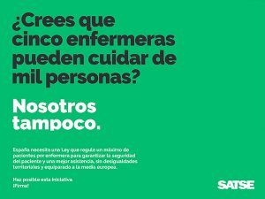 Además de en los centros sanitarios de todo el país en los que hoy ya se han difundido más de 200.000 carteles de la campaña, SATSE saldrá a la calle y montará mesas informativas en plazas y calles de numerosas localidades de Castilla-La Mancha para preguntar a todas las personas que se acerquen a las mismas si creen que ¿cinco enfermeras pueden cuidar a mil personas?, como reza el cartel de la campaña.