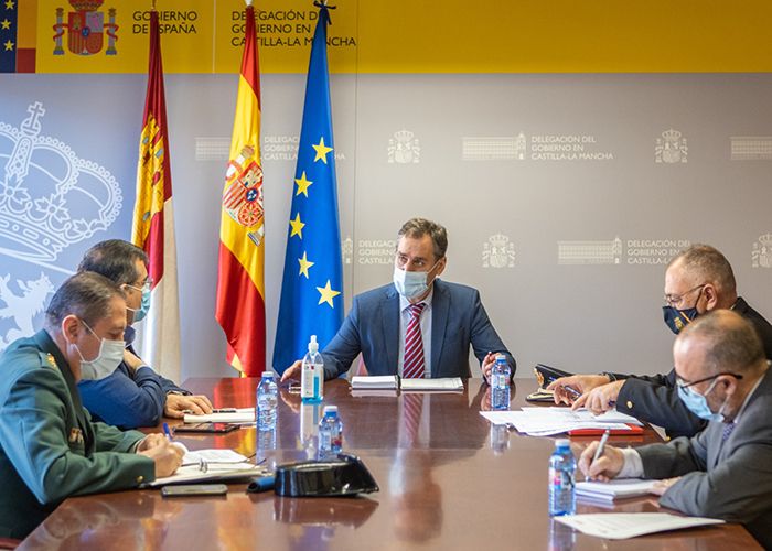 El delegado del Gobierno de España en Castilla-La Mancha, Francisco Tierraseca, ha analizado con el jefe superior de la Policía Nacional en la región, Félix Antolín, y el máximo representante de la Guardia Civil, Gabriel Llamazares, el dispositivo policial preparado para garantizar que se respeta el cierre perimetral y el horario nocturno, tal y como determinó la autoridad competente.