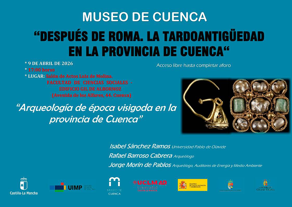 La sesión estará a cargo de la investigadora Isabel Sánchez Ramos, de la Universidad Pablo de Olavide, junto a los arqueólogos Rafael Barroso Cabrera y Jorge Morín de Pablos. Esta convocatoria forma parte del ciclo semestral “Después de Roma. La tardoantigüedad en la provincia de Cuenca”, una iniciativa coordinada de manera conjunta por el Museo de Cuenca, la Universidad Internacional Menéndez Pelayo, la Delegación de Educación, Cultura y Deportes, y la Universidad de Castilla-La Mancha.