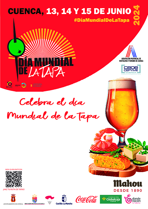 Esta jornada para conmemorar el Día Mundial de la Tapa las organiza en Cuenca la Agrupación de Hostelería de Cuenca con el patrocinio de Mahou y la colaboración del Ayuntamiento de Cuenca, Diputación Provincial, Junta de Comunidades de Castilla-La Mancha, Coca-Cola, Fundación Globalcaja y Donde Nacen Los Sabores.