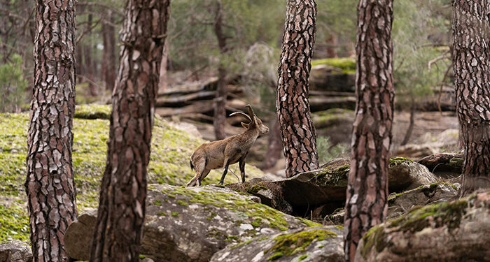 Ganador: Miguel Ángel Langa – Macho de cabra montés entre pinos en el Barranco de la Hoz.