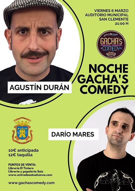 El Auditorio Municipal de San Clemente acogerá el 6 de marzo a las 21:00 horas a Agustín Durán y Darío Mares, dos de los representantes del humor castellano manchegos. Las entradas anticipadas para el evento se pueden conseguir por 10 € en Librería El Tintero, Librería-Papelería Sáiz y a través de internet en www.entradasatualcance.com.