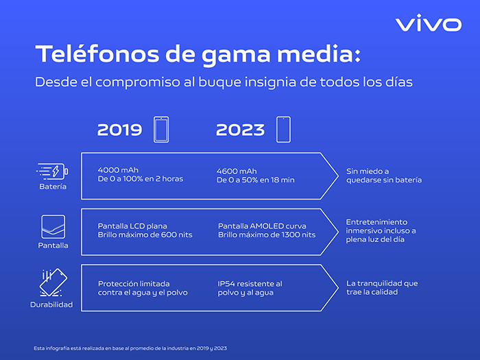 Si preguntamos a los consumidores de España qué funciones son fundamentales para ellos en un smartphone, rápidamente queda claro que son las características básicas, como la batería y la velocidad de carga, el brillo de la pantalla, la resistencia o la durabilidad. Y es precisamente aquí donde destacan los teléfonos de gama media, como la serie V de vivo, que ya ofrece prestaciones de buque insignia a precios de gama media muy competitivos.