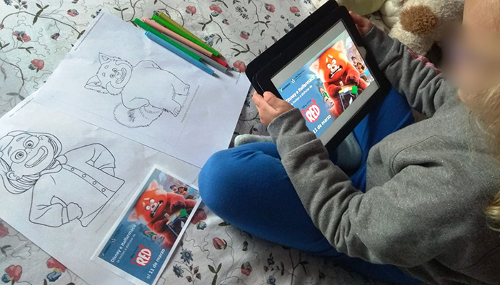 Los pequeños y pequeñas han podido acceder con su tablet y a través una app gratuita de fácil acceso. Además, han recibido junto con su desayuno dibujos de la película y lapiceros para colorear.