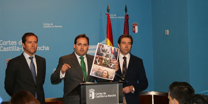 Los portavoces del Grupo Parlamentario Popular en las Cortes de Castilla-La Mancha, Lorenzo Robisco, Francisco Núñez y Carlos Velázquez, han denunciado hoy que las empresas no vienen a Castilla-La Mancha porque Page tiene en su Gobierno a un vicepresidente que apoya el independentismo catalán.