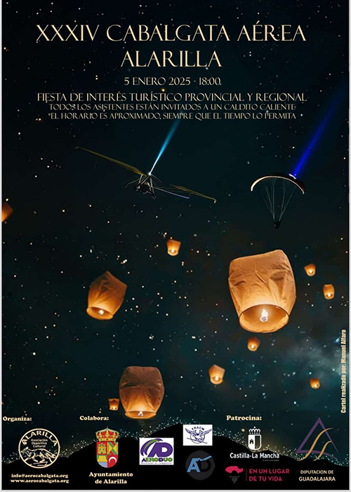 La Asociación Deportivo-Cultural de Alarilla y su Ayuntamiento, así como el pueblo en su conjunto, llevan más de 30 años organizando esta aerocabalgata cada 5 de enero.