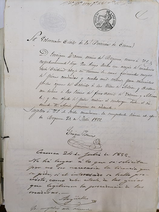 El transporte de la madera por los ríos con diferentes fines fue fundamental en la economía, ha quedado muy bien documentado. Así, Enrique Zanón, vecino de Requena, presentó instancia sobre el acopio de maderas hecho desde Cristinas abajo, unas 500 cargas para conducirlas por las aguas del Cabriel a Alcira y Cullera, con destino a las líneas del ferrocarril de Valencia y Alicante, y para que se le dé licencia de embarque.
