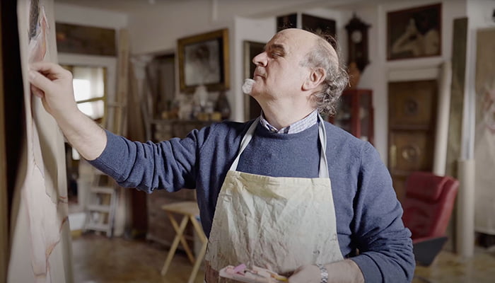 A tan intensa labor en el campo de la restauración se une su condición de artista plástico, mucho menos conocida a nivel público, pero puesta de manera esplendorosa bien recientemente de manifiesto con la magna exposición –cincuenta óleos sobre madera de gran formato, de carácter figurativo y de temática mítico-simbólica– que, bajo el título de “El Jardín de las Hespérides”, pudo verse entre enero y abril del pasado año en el Centro de Arte, espacio museístico y foro de nuevas tendencias artísticas de la Universidad Complutense, una impresionante propuesta creativa insinuante, enigmática y sensual en la que convivían, instalados en un  espacio que cabría calificar de atemporal y con un cierto acento onírico, los mitos clásicos grecolatinos con influencias claramente contemporáneas, una muestra que según el propio Priego sería “la alegoría del Paraíso, el sueño dorado y una cosmogonía, es decir, el comienzo del mundo y de nuestra civilización” y tocada de una intensa persecución de la belleza.