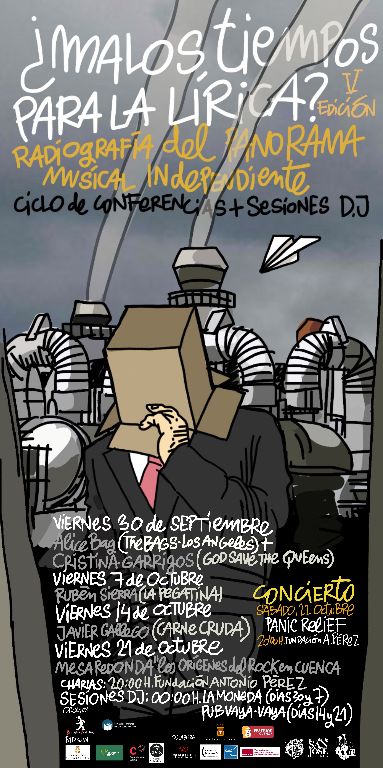 Como broche de oro a las conferencias se programó una actividad muy especial e innovadora para el ciclo. Por vez primera incluimos en el cartel un concierto en directo. El patio de la Fundación Antonio Pérez se encontraba repleto para escuchar a Panic Relief, una joven banda que demostró la calidad e intensidad de las canciones que componen su LP “Beneath the sore”.