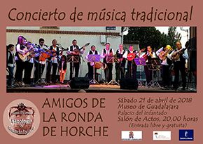 El sábado 21, desde las 9 horas se celebrará la segunda sesión de lectura de comunicación en el Museo de Guadalajara, tras la cual (aproximadamente sobre las 13:15) habrá una demostraciones de artesanía a cargo de los profesores de la Escuela de Folklore de la Diputación de Guadalajara: Mari Luz Vaillo (Restauración etnográfica), David Serrano (Carpintería tradicional), Margarita García (Labores e indumentaria tradicional), Esther Ródenas (Encaje de bolillos), Luis Alberto Larriba (Alfarería), Mª Jesús Sánchez (Esmaltes y azulejería) y Berta Bugallo (Cestería y fibras vegetales) en el Patio de los Leones del Palacio del Infantado. Por la tarde, a partir de las 16:15 aproximadamente tendrá lugar la tercera sesión de lectura de comunicaciones al término de la cual (a partir de las 20:00 horas) los “Amigos de la Ronda de Horche” ofrecerán un concierto de música tradicional en el Salón de Actos del Palacio.