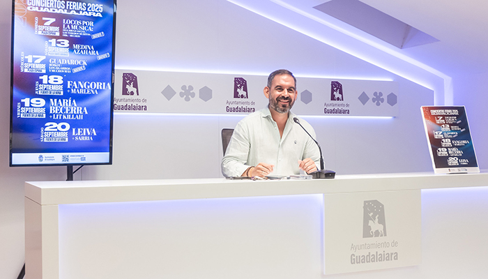 El concejal de Festejos, Santiago López Pomeda, ha presentado hoy en rueda de prensa los conciertos y actuaciones musicales de las Ferias y Fiestas de Guadalajara 2025.