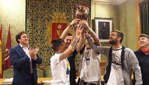 El alcalde de Cuenca, Ángel Mariscal y el concejal de Deportes, Ángel Llorens han recibido en el Salón de Plenos del Ayuntamiento a la Unión Balompédica Conquense por su ascenso a Segunda División B, tras el partido disputado contra la Sociedad Cultural Deportiva Durango en el Estadio Municipal de La Fuensanta.