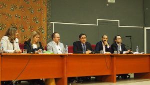 El alcalde de Cuenca, Ángel Mariscal y la teniente de alcalde de Cultura y Turismo, Marta Segarra han participado en la inauguración del VI Encuentro de Novela Criminal ‘Las Casas Ahorcadas’ que ha tenido lugar en el salón de actos del Centro Cultural Aguirre.