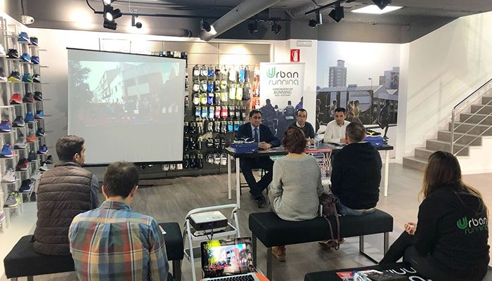 El alcalde de Cuenca, Ángel Mariscal, el concejal de Deportes, Ángel Llorens y el gerente de la empresa Atlos, Paco Milán, han presentado la carrera ’15K Hoz del Huécar’ en la tienda ‘Urban Running’ de Valencia.