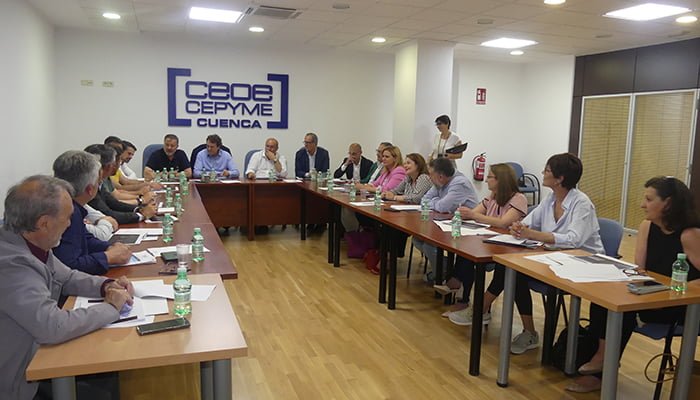 El número uno del PSOE a las Cortes de Castilla-La Mancha por la provincia de Cuenca, José Luis Martínez Guijarro, y el candidato a la Alcaldía, Darío Dolz, a los miembros del Comité Ejecutivo y Junta Directiva de CEOE CEPYME Cuenca. Dolz ha avanzado una ampliación de 600.000 metros cuadrados de suelo industrial que ya se recoge en el POM
