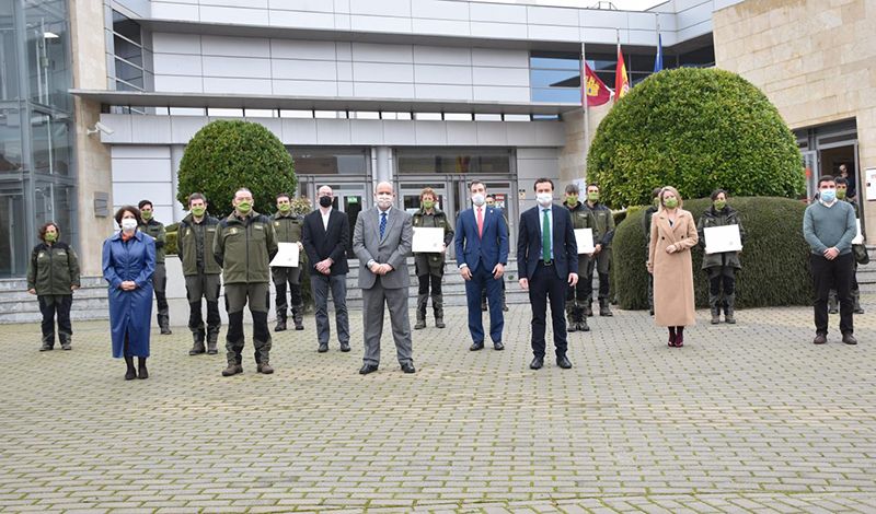 En este acto de reconocimiento, junto al vicepresidente y el consejero, han participado el viceconsejero de Medio Ambiente, Fernando Marchán; la secretaria general de la Consejería, Mercedes Gómez; el director general de Medio Natural y Biodiversidad, Félix Romero; la delegada provincial de Desarrollo Sostenible en Albacete, Llanos Valero; y el coordinador regional de los Agentes Medio Ambientales, Antonio Sancho.