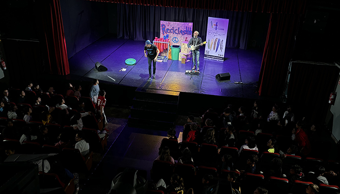 La primera de las nueve citas programadas ha tenido lugar en el día de hoy en la Casa de la Cultura de Azuqueca de Henares, en la que han participado cerca de 900 alumnas y alumnos de los centros educativos del municipio azudense, y a los que el presidente de la Mancomunidad Vega Henares, Rafael Esteban, se ha dirigido minutos antes del inicio de la primera de las tres sesiones programadas para darles la bienvenida, desearles que disfruten de esta “experiencia musical” y pedirles su “implicación y complicidad” para mejorar la recogida de los residuos en el ámbito mancomunado y, con ello, seguir dando pasos hacia un futuro más sostenible y respetuoso con el medio ambiente.