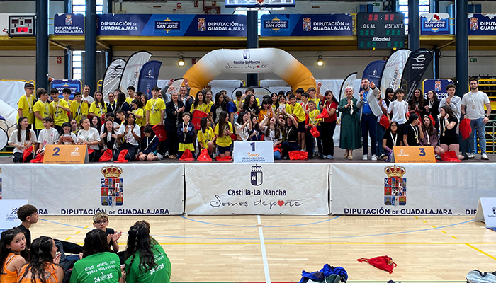 La delegada de la Junta en Guadalajara, Rosa María García, ha asistido a la primera jornada de las finales, acompañada por el delegado de Educación, Cultura y Deportes, Ángel Fernández-Montes, la delegada de Igualdad, Laura Gil, el diputado de Deportes, Marco Antonio Campos y Ángela Holguera, directora del Centro de la Fundación Ibercaja, patrocinadores este año del evento.