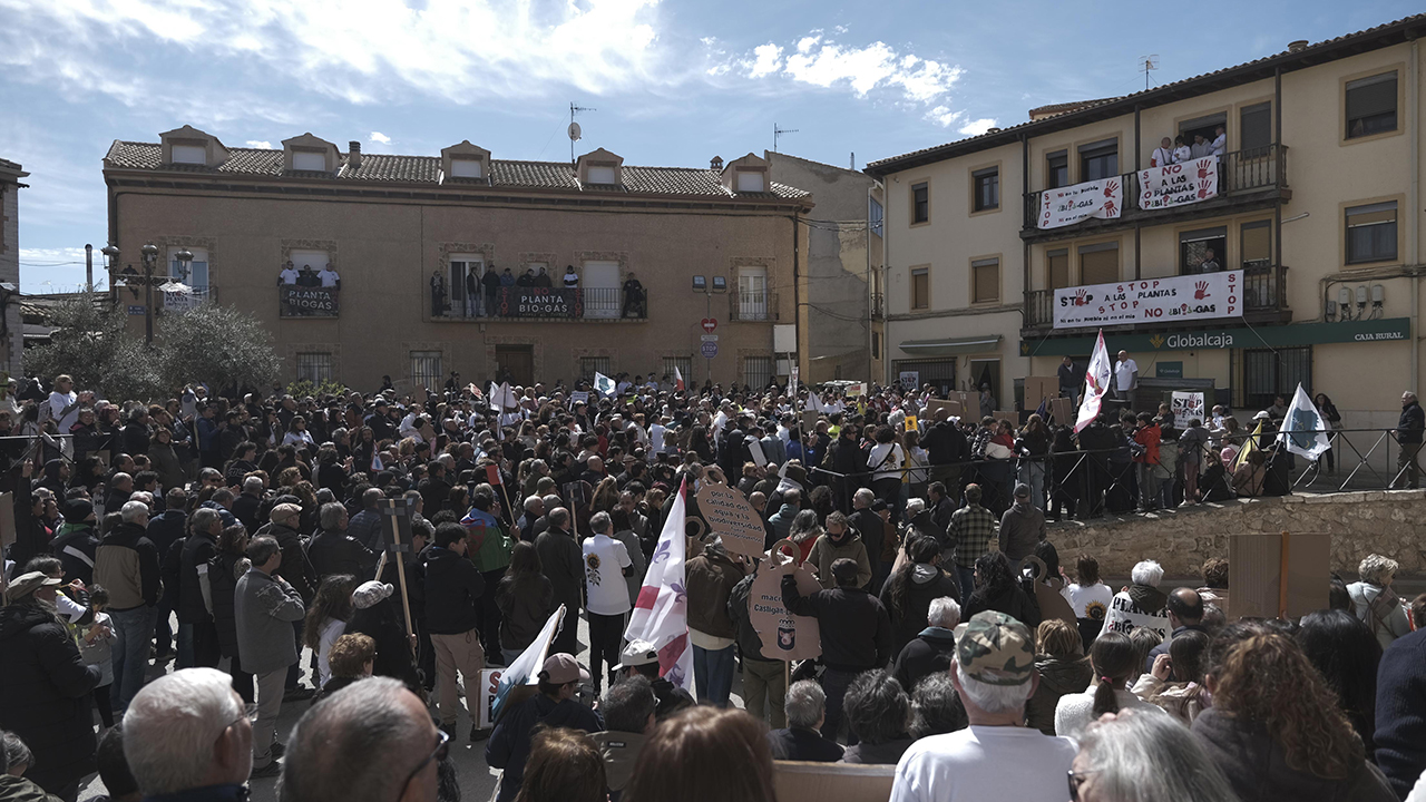 Más de un millar de personas —vecinos, agricultores, familias y colectivos sociales de distintos puntos de la provincia— se han manifestado este sábado en Carrascosa del Campo (Campos del Paraíso, Cuenca) para mostrar su rechazo a los proyectos de plantas de biogás previstos en el municipio y su entorno.