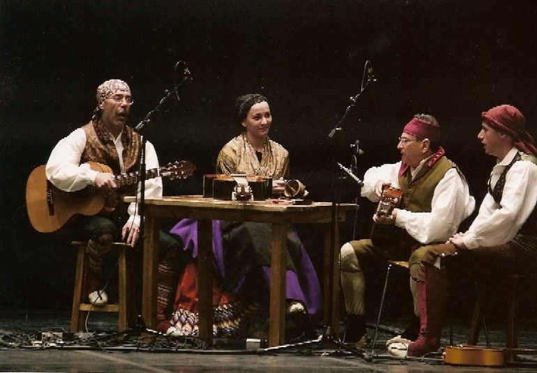 Sin embargo, en las escenas de danza eran tres las que se podían contemplar: el grupo de música y canto, la costumbrista de las aldeanas y el grupo de baile.