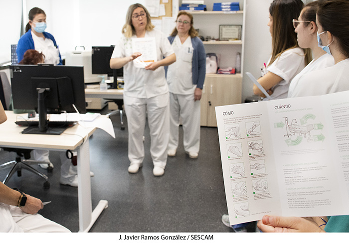 Con motivo de la celebración este lunes 5 de mayo del Día Mundial de la Higiene de Manos, profesionales del servicio de Medicina Preventiva del Hospital Universitario de Guadalajara, dependiente del Servicio de Salud de Castilla-La Mancha (SESCAM), acercan al personal una formación al respecto de esta acción de gran importancia.