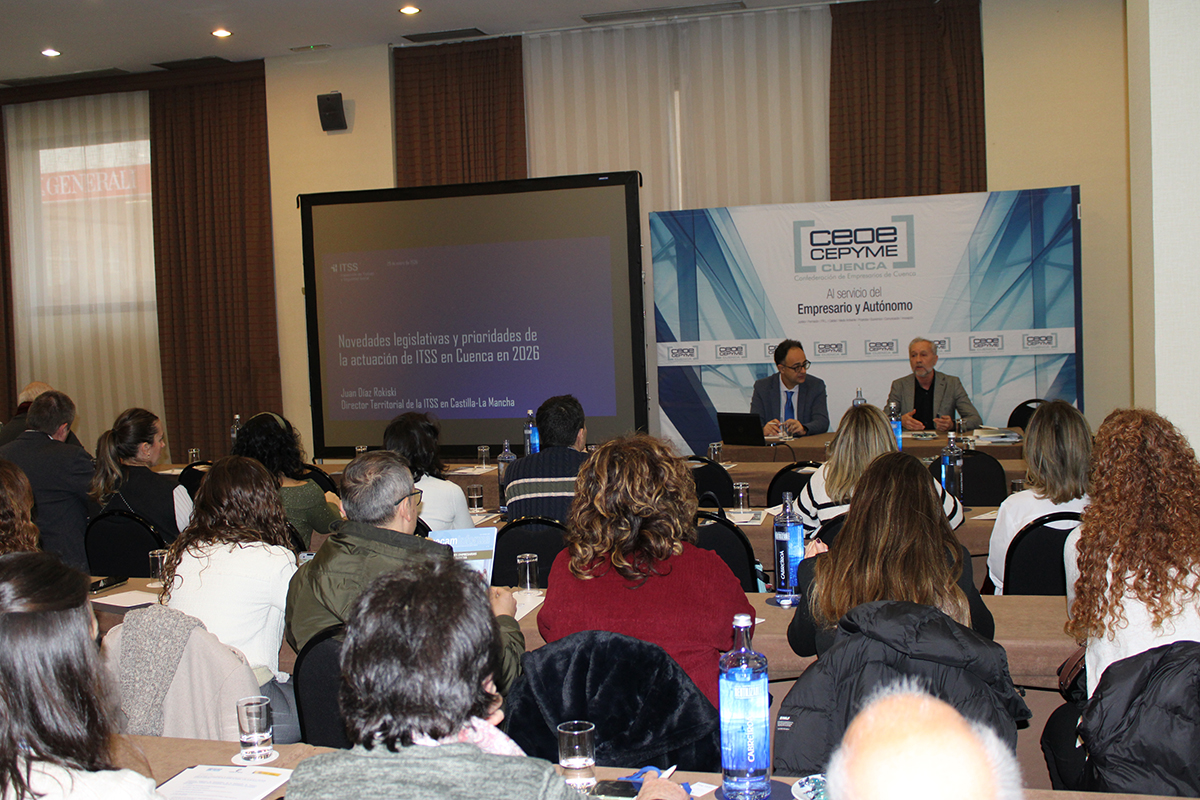 La Confederación de Empresarios de Cuenca ha celebrado nuevamente esta jornada informativa en el Hotel NH Ciudad de Cuenca en la que ha contado con la presencia del Director Territorial de la Inspección de Trabajo y Seguridad Social en Castilla-La Mancha, Juan Díaz Rokiski.