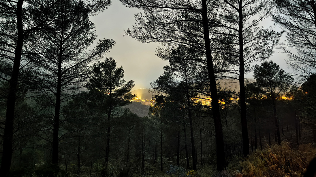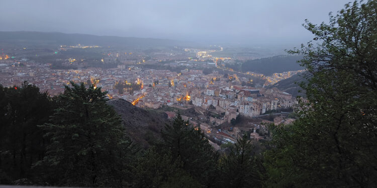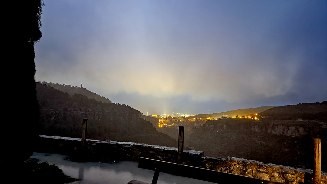 Miércoles Santo de viento y lluvia a las 20:30 horas en el Cerro del Socorro. Algunas imágenes, captadas entre el Cerro y el Mirador, muestran una ciudad como en llamas, quemada que ni la lluvia puede apagar