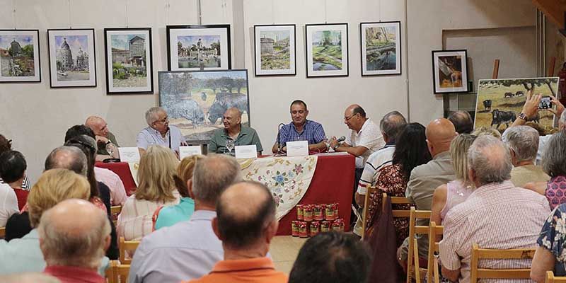 En su turno de palabra, Pedro Antonio Cañadillas, aficionado almorcileño de pura cepa, a quien una retinosis pigmentaria jugó una mala pasada quitándole la vista, pero añadiéndole clarividencia y generosidad a un corazón noble y bueno, se acordó, en primer lugar, de otro magnífico aficionado local: Justo Huerta. Lo calificó de “apasionado de los toros” y le brindó la Jornada de 2019, mirando al cielo. Igualmente, y como había hecho el alcalde, Cañadillas dio las gracias a José Carlos Tamayo, a los ponentes y al pintor local Enrique Tellado, que expuso sus mejores óleos y acuarelas taurinos para la ocasión. Como gran conocedor de la materia en cuestión, Pedro Antonio comentó que “los toros empezaron como un rito, que se ha convertido en fiesta”, y se refirió también al primer dato que se tiene sobre su presencia en Almonacid. “El archivo municipal señala que en 1534 ya se corrían los toros en la plaza del Coso”, apuntó. No olvidó Cañadillas mencionar a todos los alcaldes que han apoyado la iniciativa: Gabriel Ruiz, Rafael Higuera, Elena Gordon, y ahora José María Cañadillas. Por último, el almorcileño se refirió a Miguel Angel Moncholi, protagonista principal del evento, en su caso fundamentalmente desde la perspectiva de la invidencia y los toros. En primer lugar, recordó la anécdota de cómo se conocieron, a partir de un concurso radiofónico. El almorcileño acertó una pregunta que no le dieron por válida. Así, cuando terminó el programa, “Moncholi me llamó para decirme que se había equivocado y que me iba a pedir disculpas en antena al día siguiente”, señaló. Y no sólo eso. El periodista cumplió su palabra y volvió, además, a telefonear a Cañadillas “para invitarme a los toros”. Recordó también Pedro Antonio que Moncholi fue el primer periodista que retrasmitió una corrida de toros con un ciego a su lado, como comentarista, para que aportara su experiencia, y que fue el primero que propició la grabación de cómo se vestía un torero “en casa de José Ignacio Uceda Leal”. No faltó la cita al 2 de mayo de 1996, la tarde en la que Joselito mató seis toros en Las Ventas, ni la referencia a cuando la fiesta de los toros pasaba por su peor momento, en Cataluña, y “fue allí donde entrevistó al rey emérito”.