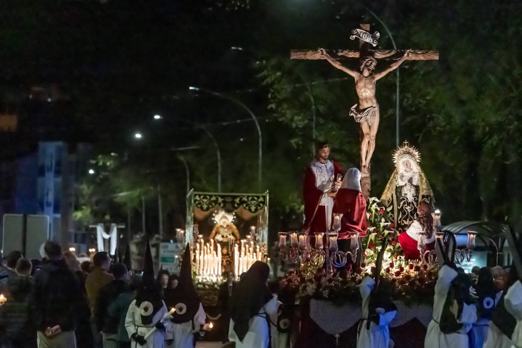 Su imagen titular, la Virgen de los Dolores, salió de Santa María sobre un solemne lecho de rosas blancas, acompañando también al Conjunto del Calvario de la Quinta Palabra.