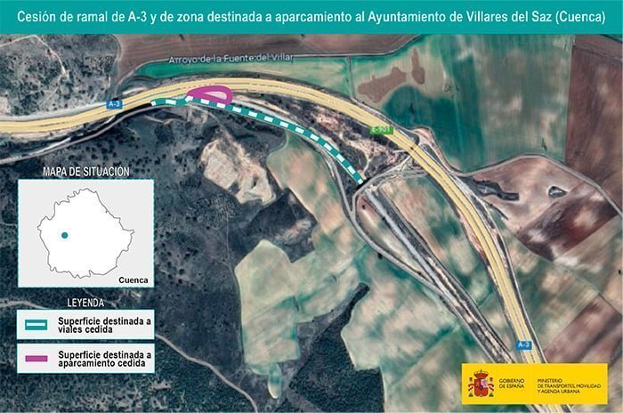 El Ministerio de Transportes, Movilidad y Agenda Urbana (Mitma) ha cedido al Ayuntamiento de Villares del Saz (Cuenca), la titularidad de un tramo de la antigua autovía A-3, entre los kilómetros 127,960 y 128,810.