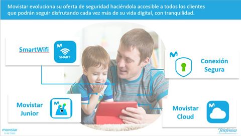 Las aplicaciones de SmartWifi, Movistar Cloud y Movistar Junior se podrán descargar desde las stores de iOs y Android desde el propio dispositivo. Del mismo modo Conexión Segura podrá activarse en canales digitales.