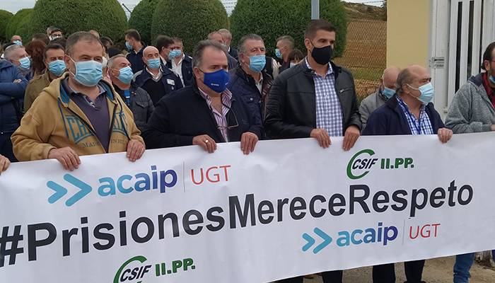 Multitudinaria concentración en el centro penitenciario de Cuenca para denunciar la falta de seguridad y condenar la agresión al funcionario