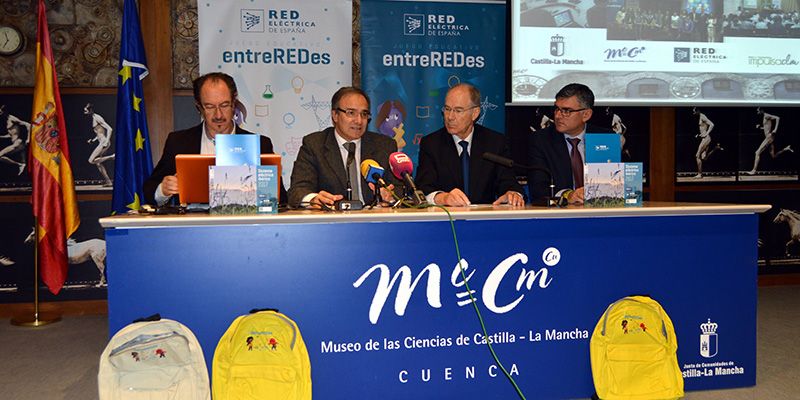 El Museo de las Ciencias de Castilla-La Mancha y Red Eléctrica de España pondrán en marcha la II Olimpiada regional ‘EntreREDes’, un concurso escolar dirigido a los centros educativos de Enseñanza Secundaria de nuestra región que ha sido presentado este martes en Cuenca por el viceconsejero de Cultura, Jesús Carrascosa, y el delegado de la zona centro de Red Eléctrica de España (ree), José Ignacio Fernández Somalo; acompañados por el delegado de la Junta en Cuenca, Ángel Tomás Godoy, y el director del Museo, Santiago Langreo.