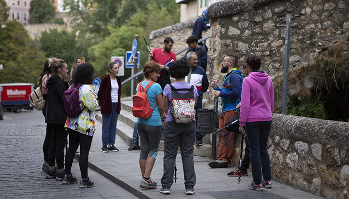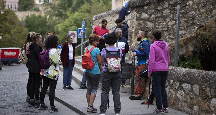 Para empezar, que mejor manera que hacerlo con un paseo por el entorno natural de la ciudad. Una veintena de personas ha salido desde el Nazareno con dirección a las Casas Colgadas, tomando un “atajo” por el Cerro del Socorro. De la mano de Daniel G. Yunta (Rutas Veleta), los participantes han podido conocer un poco más de la geología, flora y fauna del entorno en una tarde en la que la temperatura ha acompañado al grupo en su ruta y a veces también una ligera lluvia.