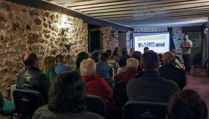 Cerca de un centenar de personas acudieron a la casa de Don Casildo en Tragacete para asistir a la presentación del futuro Centro de Tecnología Celtíbera de Tragacete, a cargo del investigador Jesús Patón, una actividad que está incluida en la primera jornada de Arqueología Experimental que se está celebrando en la localidad conquense durante este fin de semana.