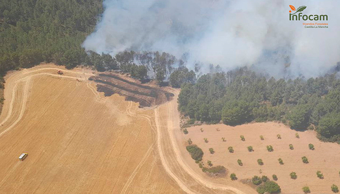El incendio detectado en Narboneta a las 14:26 horas ha quedado controlado a las 19:40 horas. Sin embargo, aún trabajan para extinguirlo seis medios y 24 personas.