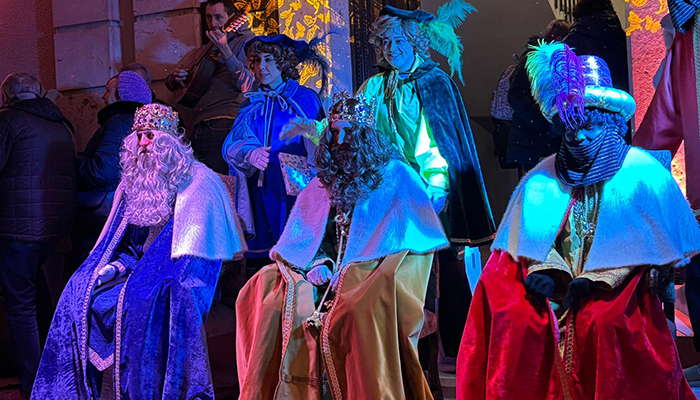 Y llego el día de la ilusión como es el 5 de enero, ya desde por la mañana los más pequeños pensaban en la llegada de los Reyes, y que había que ir a recibirlos, bien al Alto o esperarlos a Quiñoneros o en la Puerta de la Cadena, varias carrozas y figurantes les precedían, por fin llegaron los Magos, los tres en una Carroza, siendo aclamados por la chiquillería y por los menos chicos, desde el Paseo de María Cristina, por la Avda. de la Constitución, calle del arzobispo don Rodrigo y calle Mayor llegaron a la Plaza del Coso donde descendieron de su carroza dirigiéndose al Portal de Belén que había instalado al efecto, donde se encontraban María, José y el Niño a quien Adoraron, ofreciéndole Oro como Rey, Incienso como Dios y Mirra como Hombre, una vez hecho esto los tres fueron hasta el Ayuntamiento saludando a las autoridades se asomaron a la balconada para saludar a la muchedumbre que alli esperaba pero principalmente a los pequeños y adolescentes que eran los protagonistas del dia, tomando la palabra Melchor, Gaspar y Baltasar, una vez saludados todos y, una vez descendieron a la Plaza fueron recibiendo uno por uno a todo a aquel que se acercaba a ellos. Mientras se ofrecía la recepción se repartieron raciones de roscón y sidra, entonándose los clásicos villancicos briocenses como el Aguinaldo y el Niño, retirándose a descansar porque la noche era larga, y digo era larga porque a eso de la 1 de la madrugada comenzaron las visitas casa por casa para entregar los regalos, así lo hicieron hasta bien entada la madrugada.