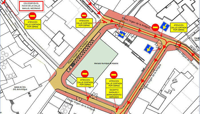 – Corte parcial de la Plaza Virgen de la Antigua, permitiéndose el acceso exclusivo a los vehículos que se dirijan al aparcamiento del Mercado de Abastos.