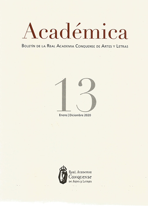La Real Academia Conquense de Artes y Letras acaba de publicar una nueva entrega, la número13, de su revista “Académica”. En sus doscientas cuarenta páginas, además de la detallada reseña del hacer de la institución a largo del año 2020, se recogen artículos tanto de los propios académicos como de otras firmas invitadas.