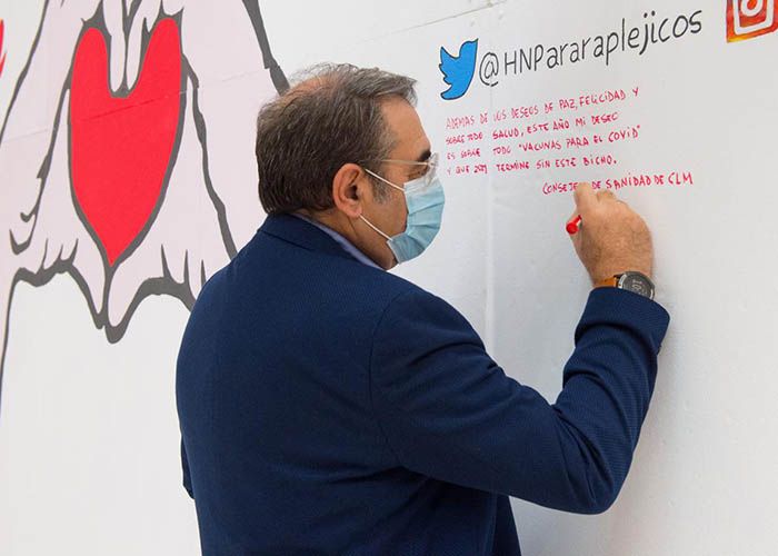 Con el deseo “de vacunas para el Covid y que 2021 termine sin este bicho”, el consejero de Sanidad de Castilla-La Mancha, Jesús Fernández Sanz, ha inaugurado la pared de los buenos deseos del Hospital Nacional de Parapléjicos, una iniciativa interactiva que combina el mundo de las redes sociales (con el hashtag #DeseosdeCorazón) y el arte mural.