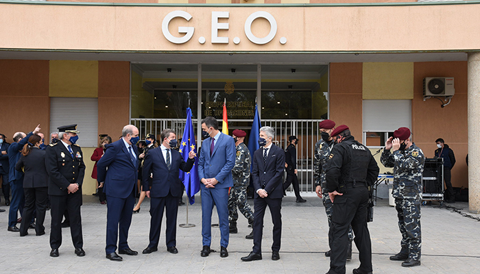 “Hoy hemos tenido que padecer, lamentablemente, un atentado de esta naturaleza”, ha señalado el presidente autonómico durante la visita que ha realizado a la base operativa del Grupo Especial de Operaciones (GEO), junto al presidente del Gobierno de España, Pedro Sánchez; y el ministro del Interior, Fernando Grande-Marlaska.